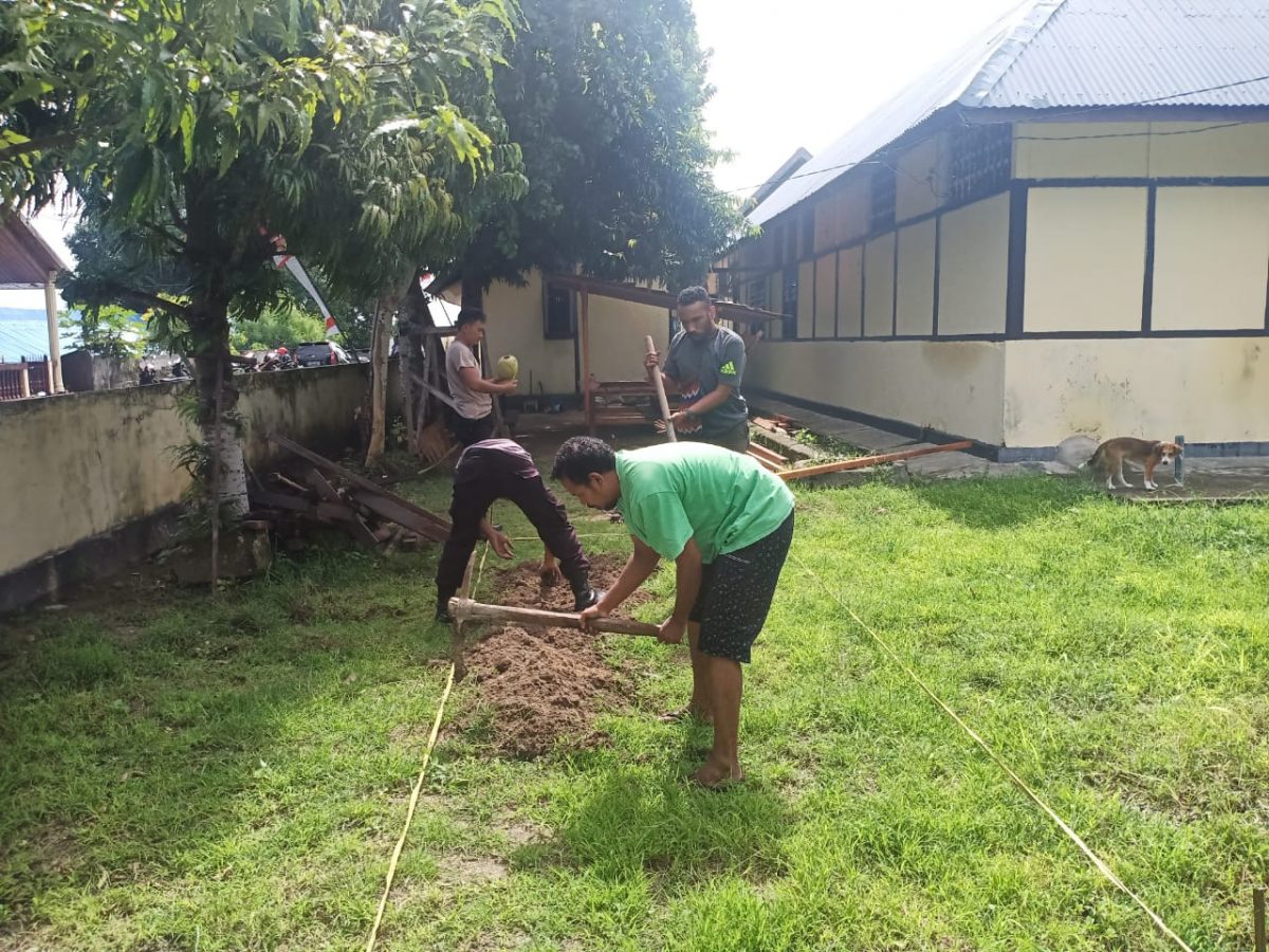 Beranda Berita Polres Polsek Tanimbar Selatan giat pembuatan Taman di Mako Polsek