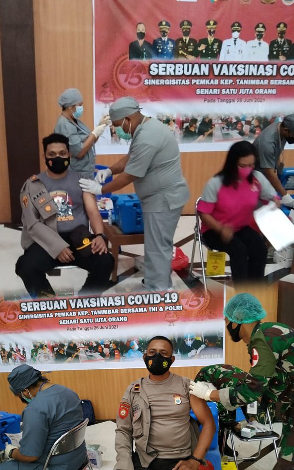 Tribratanews.polrestanimbar.com – Polda Maluku, Polres Kepulauan Tanimbar, Sabtu tanggal 26 Juni 2021, Polsek Tanimbar Selatan Polres Kepulauan Tanimbar ikut ambil bagian sukseskan kegiatan Vaksinasi massal yang digelar Polres Kepulauan Tanimbar bersama Pemda dan TNI/Polri dalam rangka menyongsong Hari Bhayangkara ke-75 tahun 2021.