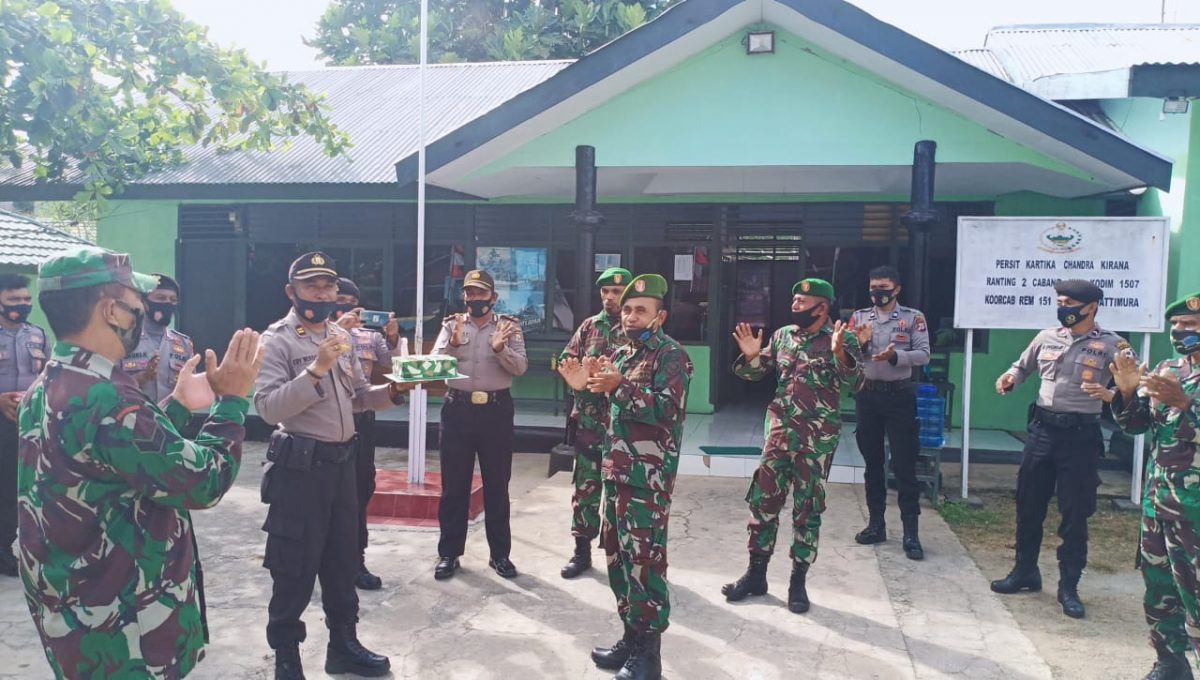 Tribratanews.polrestanimbar.com – Polda Maluku, Polres Maluku Tenggara Barat, Senin 05 Oktober 2020, pukul 08.30 wit Kapolsek Tanimbar Utara Iptu E. Weridity bersama Waka Polsek Tanimbar Utara Ipda P. Metanila dan Personil Polsek Tanimbar Utara melaksanakan kunjungan ke Koramil 1507-01 Larat dalam rangka pemberian ucapan HUT TNI yang ke 75 Tahun 2020.