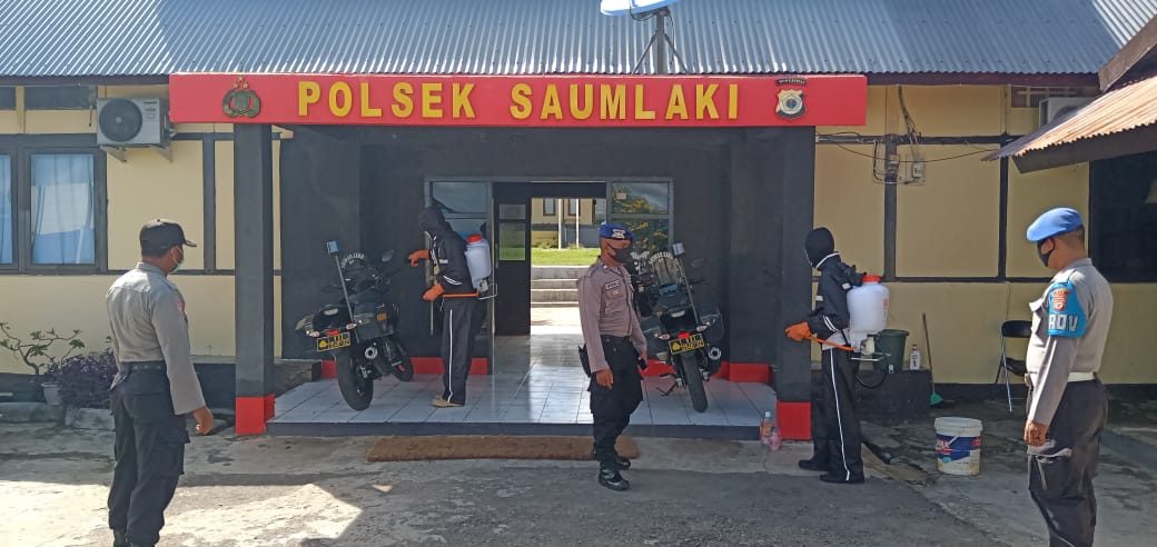 Untuk pencegahan hari ini Polres Maluku Tenggara Barat melakukan penyemprotan di sekitaran Polsek Tanimbar Selatan baik ruangan-ruangan dan lingkungan Polsek agar Polsek tetap steril untuk melayani masyarakat yang sedang membutuhkan pelayanan Kepolisian.