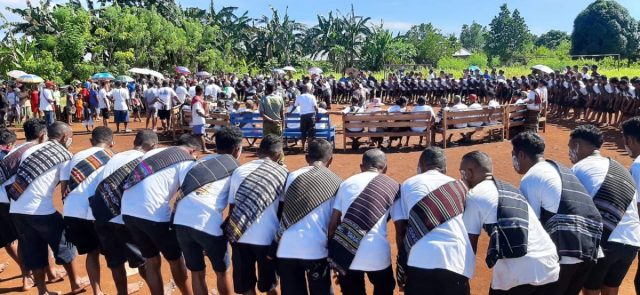 Tribratanews.polrestanimbar.com – Polda Maluku, Polres Kepulauan Tanimbar, Kapolsek Wermaktian Ipda Lucky Kora, S.H., pimpin personil berikan Pengamanan kegiatan masyarakat Panas Pela antara sesa adodo fordata dengan desa Weratan dan desa Temin, di lapangan bola kaki desa Weratan, Kecamatan Wermaktian, Kabupaten Kepulauan Tanimbar, Selasa (15/11).