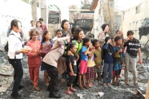 “Setelah kami selesai menyalurkan bantuan, Kami juga turut serta memberikan bantuan berupa Trauma Healing kepada anak-anak korban kebakaran”, ujarnya.