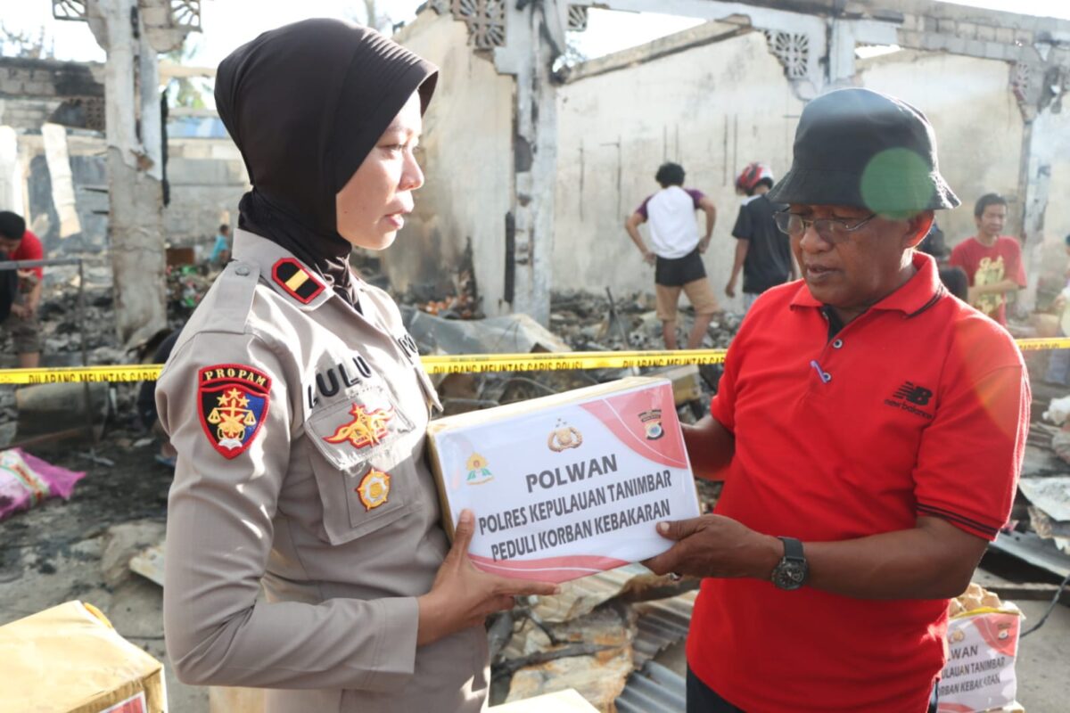 Tribratanews.polrestanimbar.com – Polda Maluku, Polwan Polres Kepulauan Tanimbar menyalurkan Bantuan Peduli korban kebakaran, sekaligus memberikan bantuan Yayasan Budha Tzu Chi kepada para korban kebakaran yang bertempat di lokasi kebakaran yakni Pasar ngirmase, Rabu (14/12).