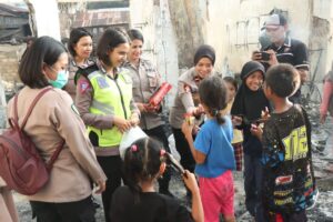 Selain memberikan bantuan kepada para korban,Ipda Lulu Herowaty juga menyampaikan bahwa pihaknya turut memberikan bantuan berupa Trauma Healing kepada anak-anak korban kebakaran.