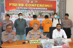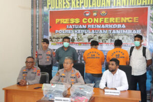 Tribratanews.polrestanimbar.com – Polda Maluku, Kapolres Kepulauan Tanimbar AKBP Umar Wijaya S.I.K Pimpin Press Conference terkait Kasus Narkoba yang didampingi oleh Kasat Resnarkoba AKP Idris Muhkadar bersama Kasi Humas Iptu O. Batlayeri yang bertempat di Ruang Rapat Polres Kepulauan Tanimbar, Senin (30/1/23).