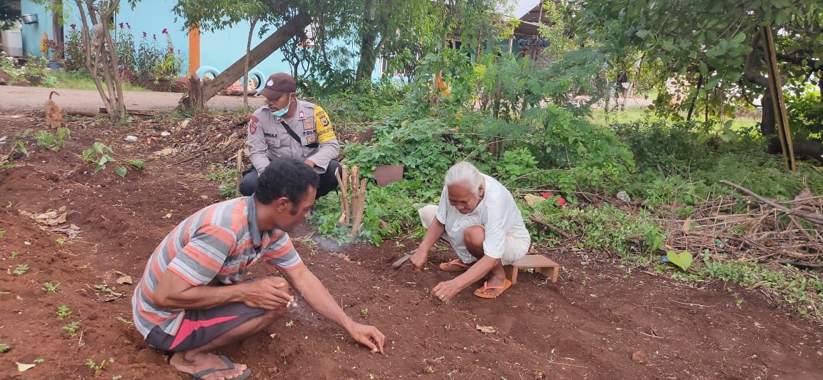 3. Guna mengantisipasi dampak kebijakan pemerintah Pusat maupun Daerah terkait pembatasan sosial dalam rangka pencegahan penularan dan penyebaran wabah Covid-19 sehingga menghambat laju pertumbuhan ekonomi yang juga berdampak pada ketersediaan bahan makanan pokok yang akan berpengaruh pada ganguan kamtibmas, maka Bhabinkamtibmas menghimbau kepada warga untuk memanfaatkan dan mengolah kembali lahan pertanian yang ada untuk ditanami tanaman makanan pokok lokal guna menjamin ketersediaan bahan pangan selama menghadapi pandemi Covid-19.