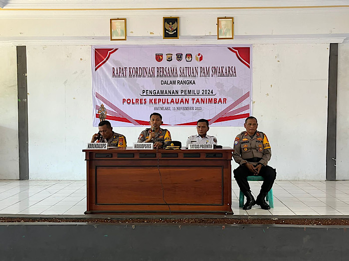 Tribratanews.polrestanimbar.com – Polda Maluku, Polres Kepulauan Tanimbar, setelah selesai melaksanakan Apel Pam Swakarsa, Kepolisian Resor Kepulauan Tanimbar Menggelar Rapat Koordinasi Pemantapan Pengamanan Swakarsa dalam rangka Pengamanan pemilu 2024 di Kabupaten Kepulauan Tanimbar, Rabu (15/11).