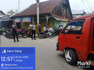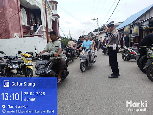 Mereka tampak bertugas melakukan pengamanan dengan ketat sebelum, selama, dan sesudah pelaksanaan Sholat Jumat Demi keamanan, kenyamanan dan kelancaran Ibadah Sholat bagi Umat Muslim yang ada di Kota Saumlaki, Kecamatan Tanimbar Selatan, Kabupaten Kepulauan Tanimbar, Jumat (25/04/25).