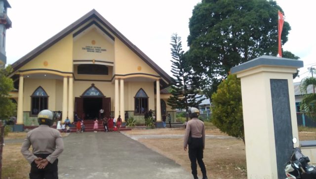 Tribratanews.polrestanimbar.com – Polda Maluku, Polres Kepulauan Tanimbar, personil piket Satuan Samapta lakukan kegiatan Patroli Religi ditempat Ibadah umat Kristen di seputaran wilayah hukum Polres Tanimbar. Minggu (18/09), pukul 09.00 wit.