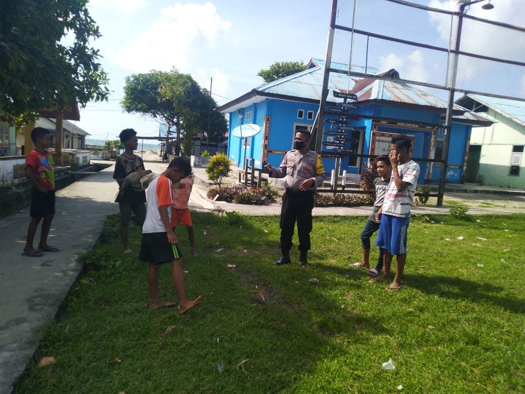Dalam giat tersebut Bhabinkamtibmas menyampaikan tentang New Normal yakni menjalankan aktifitas Normal seperti biasa dengan menerapkan Protokol Kesehatan Pencegahan Covid – 19 kepada anak – anak agar di mengerti dan di pedomani dan harus di laksanakan, setelah itu Bhabinkamtibmas menghimbau kepada anak – anak seluruhnya agar kembali ke rumah masing – masing dan memegang buku untuk belajar. Bhabinkamtibmas juga mengawasi anak – anak tiap hari dalam proses belajar di rumah masing – masing sehingga dapat mengurangi aktifitas bermain di dalam Desa.