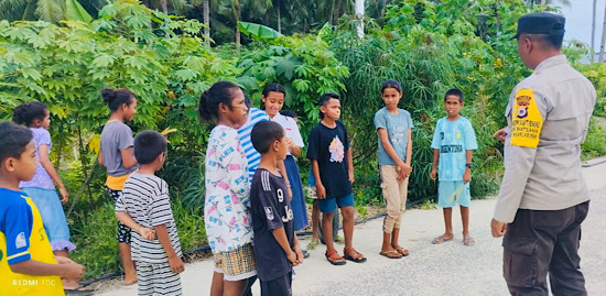 Tribratanews.polrestanimbar.com – Polda Maluku, Kepolisian Resor Kepulauan Tanimbar, Dalam upaya untuk memberikan motivasi dan edukasi kepada Anak-Anak di usia dini dalam berperilaku yang baik, Bhabinkamtimas Desa Watmasa, Polsek Wuarlabobar Bripka HENDRA J. HALIK mengunjungi Anak-Anak dan Remaja Usia Sekolah yang sementara sedang bermain.