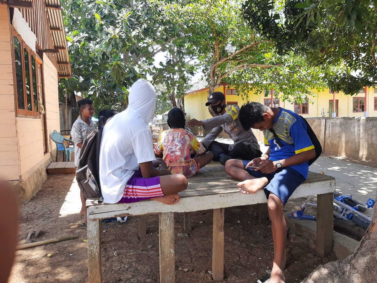 Tribratanews.polrestanimbar.com – Polda Maluku, Polres Maluku Tenggara Barat, Sabtu 17 Oktober 2020, pukul 09.30 wit, bertempat di Desa Batuputih, Kecamatan Wermaktian, Kabupaten Kepulauan Tanimbar Bhabinkamtibmas Desa Batuputih Bripka P. Titirloloby menyambangi warga masyarakat anak- anak usia dini dan remaja yang sementara duduk ditempat santai milik keluarga Kdise.