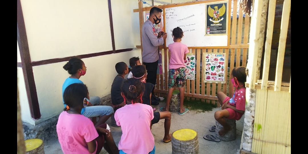 Walaupun dengan keterbatasan apa adanya bhabinkamtibmas selalu memberikan yang terbaik buat penerus bangsa ini kedepan untuk meraih cita-cita mereka guna meningkatkan program belajar anak di bumi Duan lolat, didalam program mengajar anak bhabinkamtibmas juga membagikan buku tulis serta alat tulis bagi mereka untuk meningkatkan semangat belajar anak-anak di desa binaan, di dalam proses mengajar pun yang bhabinkamtibmas laksanakan guna mengurangi aktifitas bermain anak-anak didesa ditengah situasi pandemi Covid-19, dalam program belajar anak bhabinkamtibmas tetap melaksanakan sesuai dengan protokol kesehatan : selalu memakai masker, jaga jarak, rajin cuci tangan.
