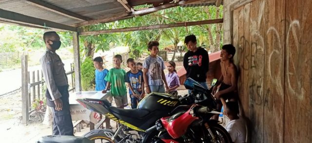 Tribratanews.polrestanimbar.com – Polda Maluku, Polres Maluku Tenggara Barat, Kamis 18 Juni 2020, pukul 10.30 wit, bertempat di Desa Lauran, Kecamatan Tanimbar Selatan, Kabupaten Kepulauan Tanimbar Bhabinkamtibmas Desa Lauran Bripka Yusup A. Halirat, S.H., menyambangi anak – anak yang sedang berkumpul bermain bersama dan melaksanakan Ssosialisasi Skenario New Normal (Tatanan Kehidupan Baru) Penanganan Covid-19.