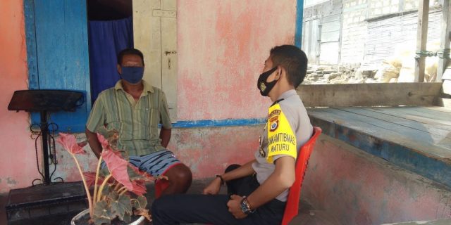 Serta Bhabinkamtibmas Desa Waturu memberikan pesan – pesan kepada Bapak Karel Labobar tentang 4 M antara lain :