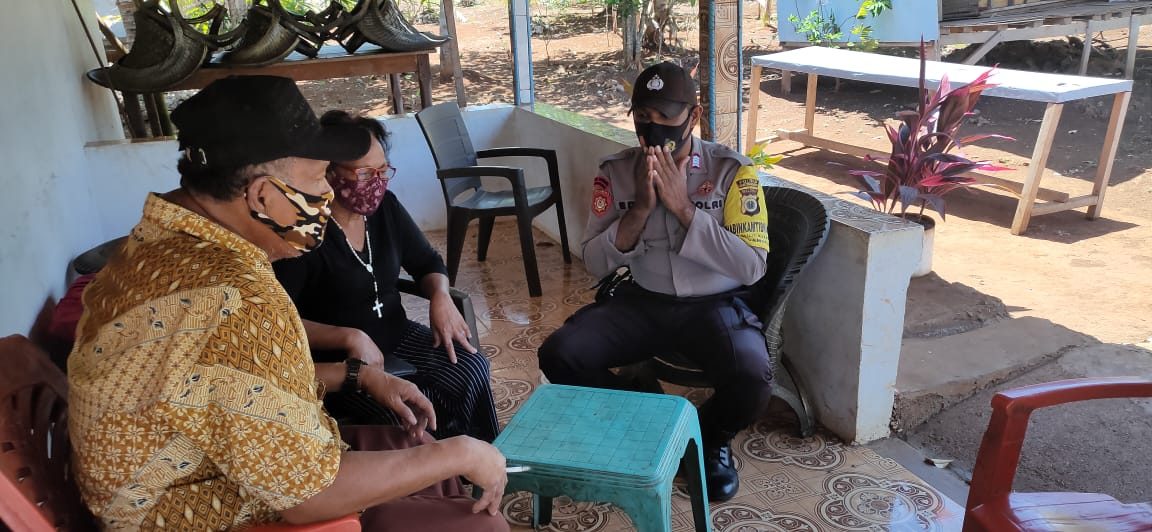 Sambangi Bapak Poli Rngkore, Bhabinkamtibmas Olilit Barat himbau Patuhi Prokes