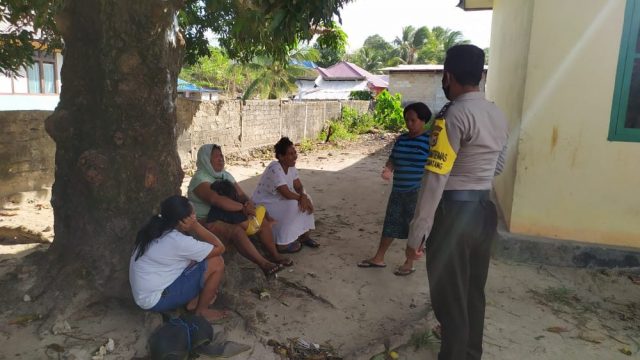 Tribratanews.polrestanimbar.com – Polda Maluku, Polres Maluku Tenggara Barat, Sabtu 10 Oktober 2020, pukul 15.40 wit bertempat di Desa Lermatang Kecamatan Tanimbar Selatan Kabupaten Kepulauan Tanimbar Bhabinkamtibmas Desa Lermatang Briptu T. O. Daniel, S.H menyambangi sekelompok ibu-ibu yang sedang duduk memberikan teguran kepada merek yang tidak memakai masker.