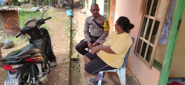 Tribratanews.polrestanimbar.com – Polda Maluku, Polres Maluku Tenggara Barat, Selasa 30 Juni 2020, pukul 11.30 wit, bertempat di Desa Olilit Barat, Kecamatan Tanimbar Selatan Kabupaten Kepulauan Tanimbar Bhabinkamtibmas Desa Olilit Barat Brigpol Edy. F. Saklil melaksanakan giat door to door System (DDS) kepada kedua keluarga antara lain keluarga Bapak Yosep Lamere dan keluarga Ibu Elisabet Bahi.
