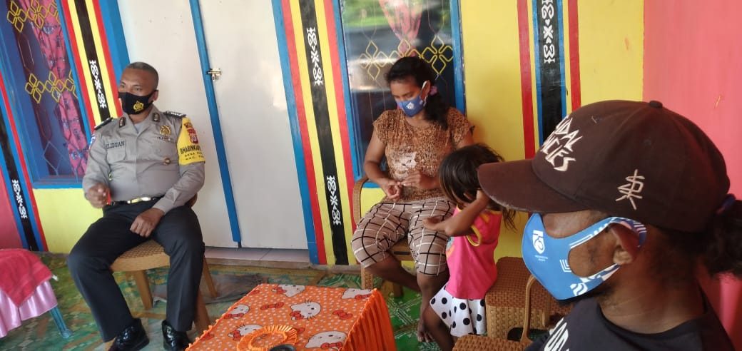 Sekaligus Bhabinkamtibmas melaksanakan giat Edukasi, Sosialisasi dan Himbauan Pendisiplinan penerapan protokol kesehatan pencegahan Covid-19 dan Adaptasi Kebiasaan Baru.