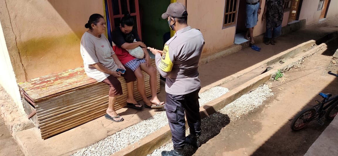 Bhabinkamtibmas melaksanakan giat Edukasi, Sosialisasi dan Himbauan Pendisiplinan penerapan protokol kesehatan pencegahan Covid-19 dan Adaptasi Kebiasaan Baru.