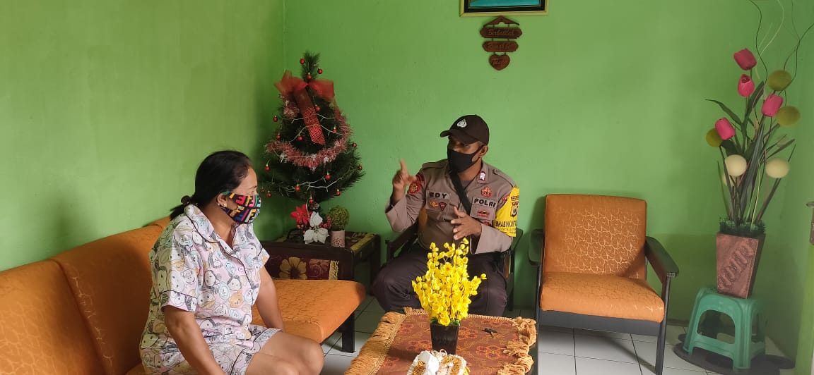 Bhabinkamtibmas memberikan cara penerapan protokol kesehatan pencegahan penyebaran virus corona (Covid-19) antara lain :