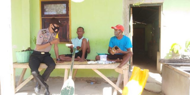 Bhabinkamtibmas Desa Waturu menyambangi keluarga Bapak Niko Ratuanik dan Bapak Demianus Luturmas yang sementara duduk didepan teras dan menemukan bahwa Bapak Demianus Luturmas tidak melaksanakan Protokol Kesehatan Covid-19 yaitu tidak memakai masker.