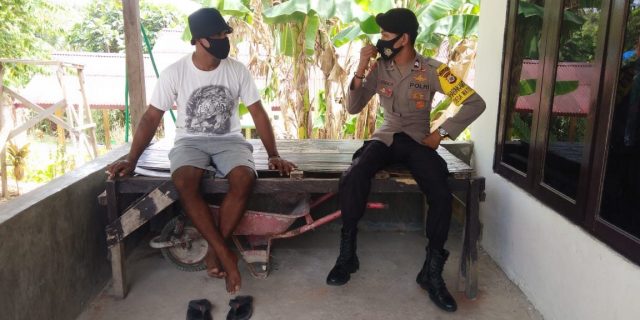 Sambangi Ketua Pemuda Desa, Bhabinkamtibmas Waturu Sampaikan untuk Tetap Laksanakan Prokes Covid-19