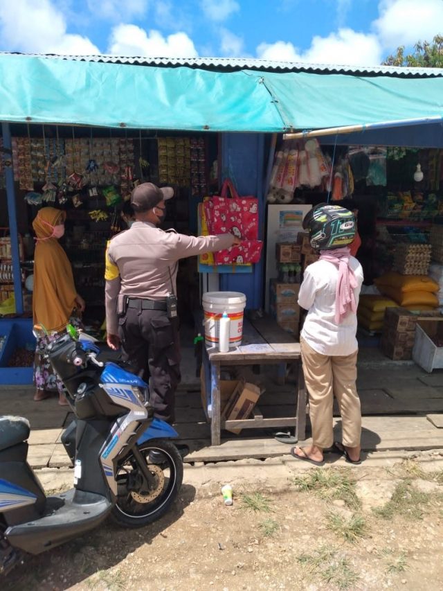 Tribratanews.polrestanimbar.com – Polda Maluku, Polres Maluku Tenggara Barat, Selasa 29 September 2020, pukul 15.00 wit bertempat di Desa Sifnana Kecamatan Tanimbar Selatan Kabupaten Kepulauan Tanimbar Bhabinkamtibmas Desa Sifnana Bripka Petrus Keliduan sambangi Kios Rosiati Milik Ibu Rosiati, sekaligus Bhabinkamtibmas melaksanakan giat Edukasi, Sosialisasi dan Himbauan Pendisiplinan penerapan protokol kesehatan pencegahan Covid-19 dan Adaptasi Kebiasaan Baru.