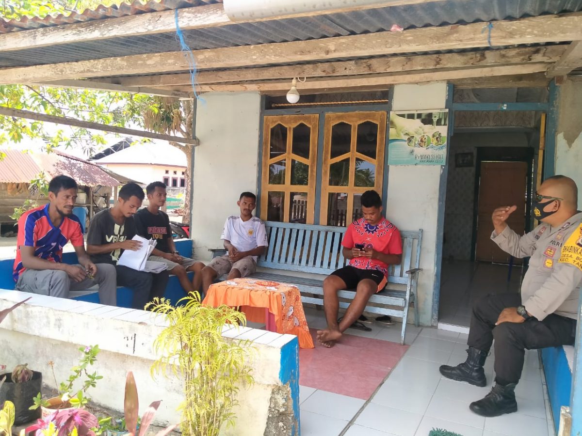 Tribratanews.polrestanimbar.com – Polda Maluku, Polres Maluku Tenggara Barat, Jumat 30 Oktober 2020, pukul 12.30 wit bertempat di RT.09 Kecamatan Tanimbar Selatan Kabupaten Kepulauan Tanimbar Bhabinkamtibmas Desa Bomaki Bripka S. E. S. Mitakda melaksanakan giat sambang kepada pemuda Desa Bomaki yang sementara duduk santai didepan rumah Bapak Hery Laiyan, agar selalu memperhatikan jarak supaya jangan terlalu berdekatan.