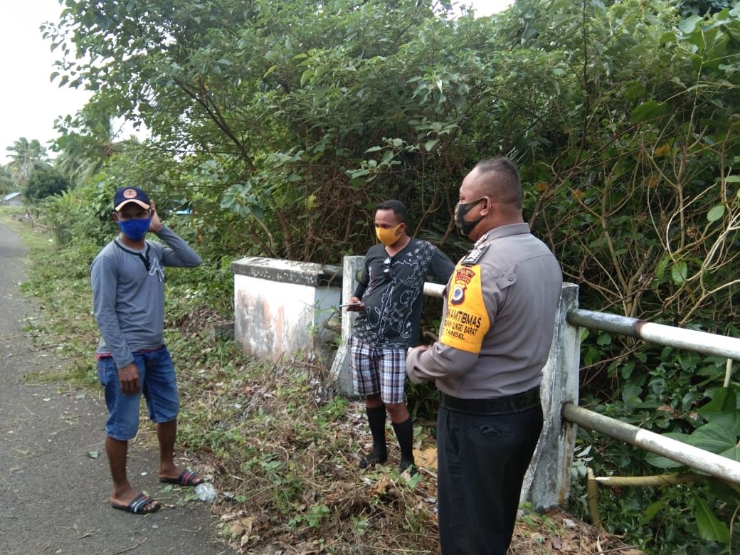 Tribratanews.polrestanimbar.com – Polda Maluku, Polres Maluku Tenggara Barat, Minggu 11 Oktober 2020, pukul 15.00 wit bertempat di Desa persiapan Ilngei Barat Kecamatan Tanimbar Selatan Kabupaten Kepulauan Tanimbar Bhabinkamtibmas Bripka N. Kundre mengunjungi kelompok Pemuda Desa yang sedang membersihkan bahu jalan guna menyampaikan arahan tentang Edukasi, Sosialisasi dan Himbauan Pendisiplinan penerapan protokol kesehatan pencegahan Covid-19 4M.