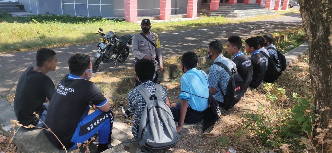 Bhabinkamtibmas mengarahkan agar segera kembali dan tidak melakukan aktifitas berkumpul dan juga mengarahkan agar tidak melakukan aksi tauran antar pelajar.