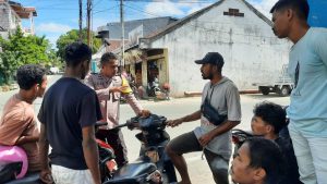 Tribratanews.polrestanimbar.com – Polda Maluku, Polres Kepulauan Tanimbar, Bhabinkamtibmas Kelurahan Saumlaki Polsek Tanimbar Selatan, Aipda A. Johanes Sambangi para tukang Ojek dan berikan Sosialisasi tentang kenaikan harga BBM dan larangan membakar hutan dan lahan sembarangan. Rabu (07/09).