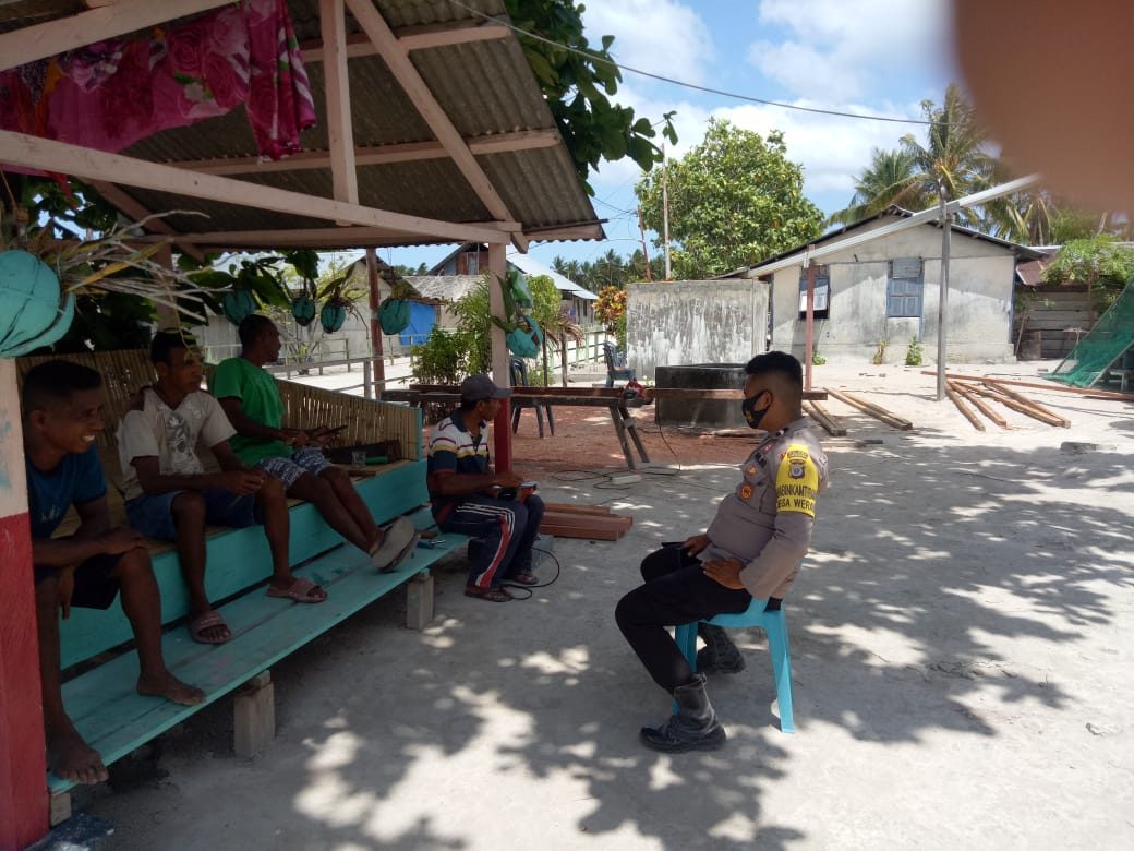Tribratanews.polrestanimbar.com – Polda Maluku, Polres Maluku Tenggara Barat, Selasa 20 Oktober 2020,pukul 13.00 wit bertempat di Desa Werain, Kecamatan Selaru, Kabupaten Kepulauan Tanimbar Bhabinkamtimas Desa Werain Bripda Wanto Isran melaksanakan kegiatan sambang sekaligus giat edukasi sosialisasi dan pendisiplinan protokol kesehatan Covid-19.