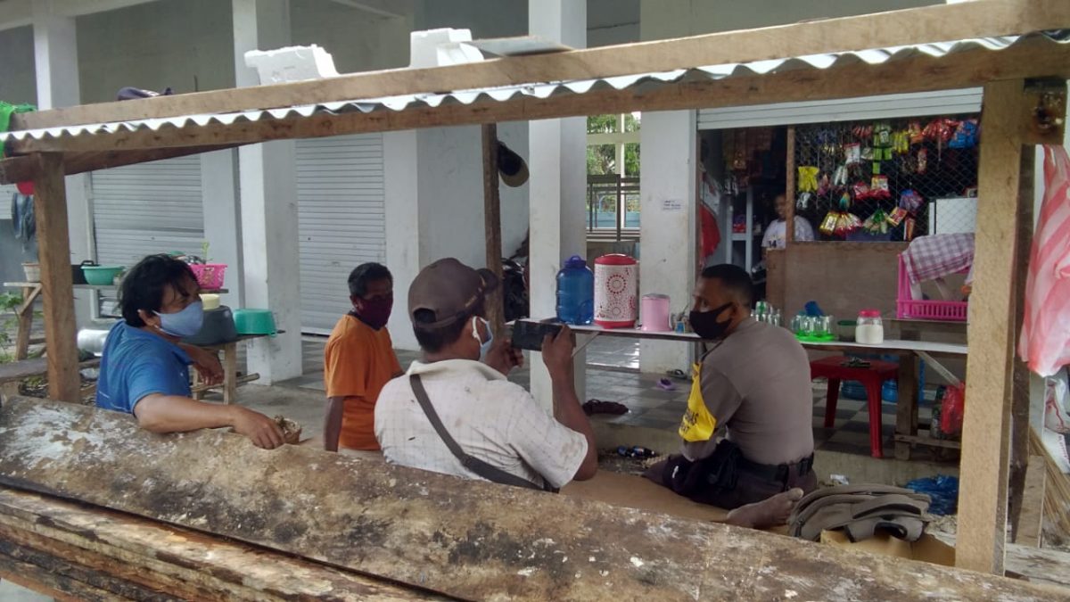 Tribratanews.polrestanimbar.com – Polda Maluku, Polres Maluku Tenggara Barat, Kamis 27 Agustus 2020, pukul 14.30 wit, bertempat di Pasar Desa Kabiarat Kecamatan Tanimbar Selatan Kabupaten Kepulauan Tanimbar Bhabinkamtibmas Desa Kabiarat Bripka D. Poceratu sambangi warga Desa Kabiarat guna memberikan bimbingan dan penyuluhan (Binluh) tentang Adaptasi Kebiasaan Baru dalam menghadapi Wabah Virus Corona (Covid-19) yang saat ini sedang merebah dan meresahkan masyarakat.