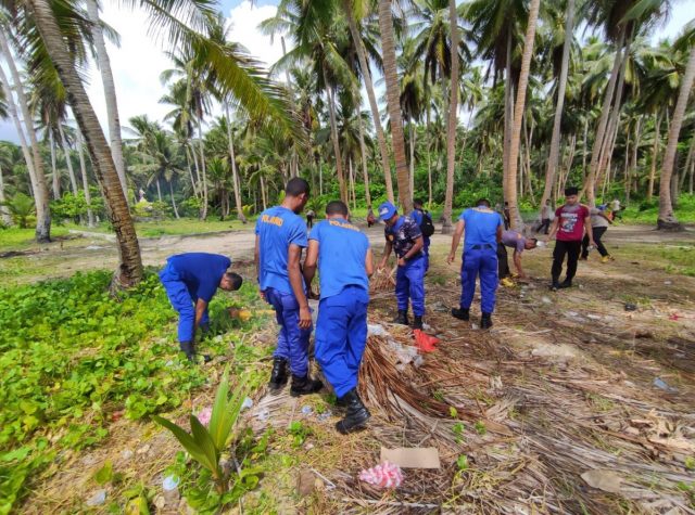 Tribratanews.polrestanimbar.com – Polda Maluku, Polres Kepulauan Tanimbar, pukul 08.00 wit, dalam rangka menyongsong hari ulang tahun (HUT) Airud yang ke-71 tahun 2021, personil Sat Polairud bersama personil Polres Kepulauan Tanimbar melaksanakan kegiatan Bhakti Sosial, bersih – bersih di tempat Wisata Pantai Weluan, desa Olilit timur, kecamatan Tanimbar Selatan, kabupaten Kepulauan Tanimbar. Jumat (12/11/2021).
