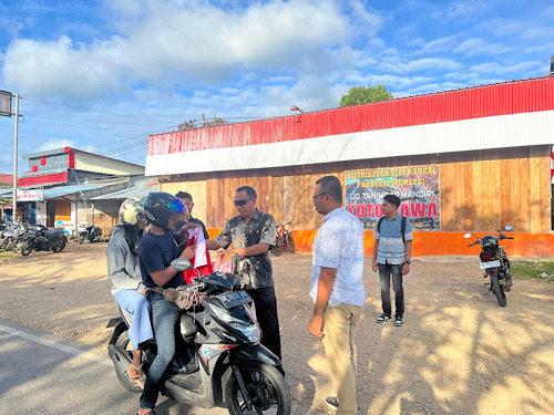 Dengan menampilkan senyum ramah menyapa Masyarakat, Personel Satuan Intelkam Polres Kepulauan Tanimbar membagikan Bendera Merah Putih kepada setiap pengendara yang melintas di sepanjang jalan maupun pada area pemukiman Warga di lokasi yang didatangi oleh Petugas.