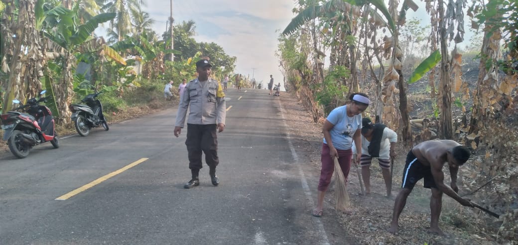 Dalam giat sambangnya, Bhabinkamtibmas menyampaikan Imbauan kepada Warga untuk tidak membuka lahan dengan cara dibakar guna mencegah agar tidak munculnya titik api yang dapat menimbulkan bahaya Kebakaran Hutan dan Lahan (Karhutla).
