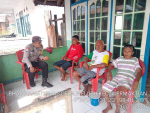 Tribratanews.polrestanimbar.com – Polda Maluku, Kepolisian Resor Kepulauan Tanimbar, Dalam upaya menjaga stabilitas keamanan dan ketertiban Masyarakat (Kamtibmas), Bhabinkamtibmas Desa Welutu, Aipda D. RUMLAWANG melaksanakan kegiatan sambang dialogis ke Warga binaan di Desa Welutu, Kecamatan Wermaktian, Kabupaten Kepulauan Tanimbar pada, Selasa (20/01/26).