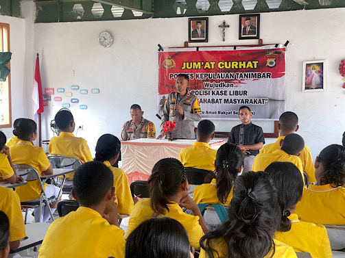 Mengawalinya, Kompol FRIHAMDENI, S.H., S.I.K., M.A., menyampaikan ucapan terima kasih kepada Kepala Sekolah, para Dewan Guru hingga seluruh Pelajar SMA Katolik Santo Lukas atas sambutan hangat yang diberikan. Jumat Curhat ini merupakan kegiatan Rutin yang dilaksanakan secara berkeliling pada Wilayah yang ada di Kabupaten Kepulauan Tanimbar untuk mendengar keluhan, masukan dan kritikan dari Masyarakat terkait Harkamtibmas maupun peningkatan kinerja Polri agar lebih baik kedepan.