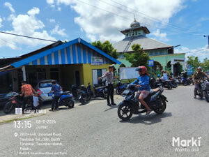 Tribratanews.polrestanimbar.com – Polda Maluku, Kepolisian Resor Kepuluan Tanimbar, Berbagai langkah pengamanan telah dilakukan dengan menempatkan Personel Satuan Lalu Lintas Polres Kepulauan Tanimbar pada ruas-ruas jalan di sejumlah Masjid yang berada di Kota Saumlaki, Kecamatan Tanimbar Selatan, Kabupaten Kepulauan Tanimbar, Jumat (08/11/24).