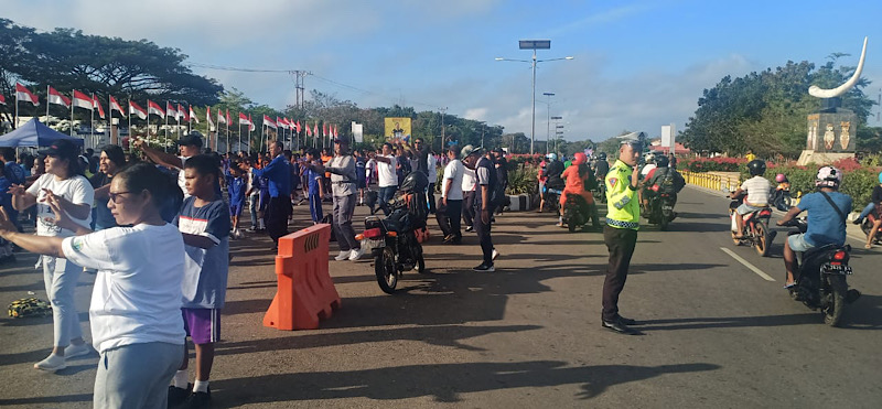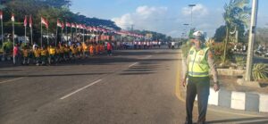 Nampak terlihat di simpang-simpang jalan yang dilalui oleh para perserta jalan santai, Personel Sat Lantas Polres Kepulauan Tanimbar telah ditempatkan untuk dilakukan pengamanan dan pengaturan.
