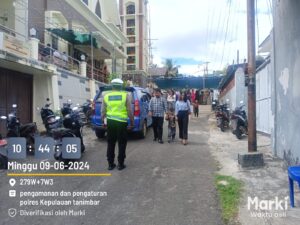 Tribratanews.polrestanimbar.com – Polda Maluku, Kepolisian Resor Kepulauan Tanimbar, Dalam rangka untuk menciptakan situasi kenyamanan, keamanan dan ketertiban dalam berlalu lintas bagi Masyarakat, Sat Lantas Polres Kepulauan Tanimbar lakukan pengamanan (pam) dan pengaturan lalu lintas (Gatur Lalin) di sejumlah Gereja saat ibadah Minggu berlangsung, Minggu (09/06/24).