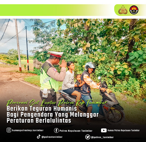 Tribratanews.polrestanimbar.com – Polda Maluku, Sat lantas Polres Kepulauan Tanimbar, melaksanakan giat Patroli sekaligus Himbauan dan teguran, berupa 7 Prioritas Pelanggaran Lalu lintas Kepada masyarakat pengguna Jalan di seputaran Kota Saumlaki dan Pengaturan pada jam pulang sekolah, Selasa (02/05).