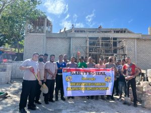 Kegiatan Bakti Sosial yang dilakukan berupa kerja bakti membantu membersihkan lingkungan masjid dan mengangkat material Pembangunan Masjid Babut Taqwa yang sementara dibangun.