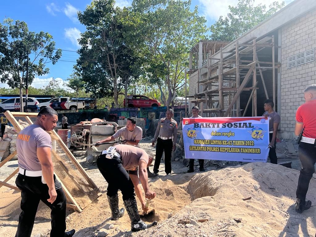 “Dalam rangka menyongsong HUT Lalu Lintas yang ke-67 tahun 2022 yang diisi dengan kegiatan Bakti Sosial, kita lakukan Bakti Sosial di Masjid Babut Taqwa Saumlaki berupa kerja bakti Pembersihan lingkungan Masjid dan mengangkat material pembangunan Masjid yang sementara dibangun”. Ungkapnya.