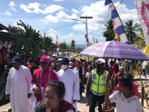 Tribratanews.polrestanimbar.com – Polda Maluku, Polres Kepulauan Tanimbar, personil Sat Lantas Polres Tanimbar lakukan kegiatan Pengawalan dan Pengamanan route rangkaian kegiatan Uskup Diosis Amboina Mgr. Seno Ngutra, Pr. menuju desa Alusi Krawain Kecamatan Kormomolin. Kamis (19/05/2022).