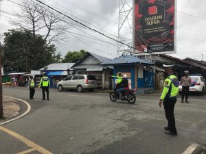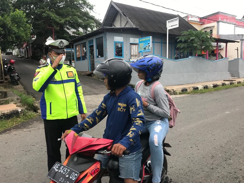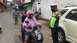 Sat Lantas Polres Tanimbar lakukan Penjagaan Pos tetap dan berikan teguran secara Humanis kepada Masyarakat