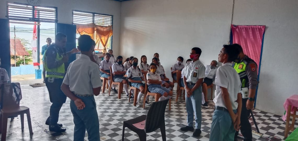 Tribratanews.polrestanimbar.com – Polda Maluku, Polres Kepulauan Tanimbar, Selasa tanggal 12 oktober 2021, pukul 09.00 wit s/d 10.30 wit, bertempat di Sekolah SMTK Sola Gratia Saumlaki, Sat Lantas Polres Tanimbar melaksanakan kegiatan Preemtif dalam bentuk Sosialisasi.