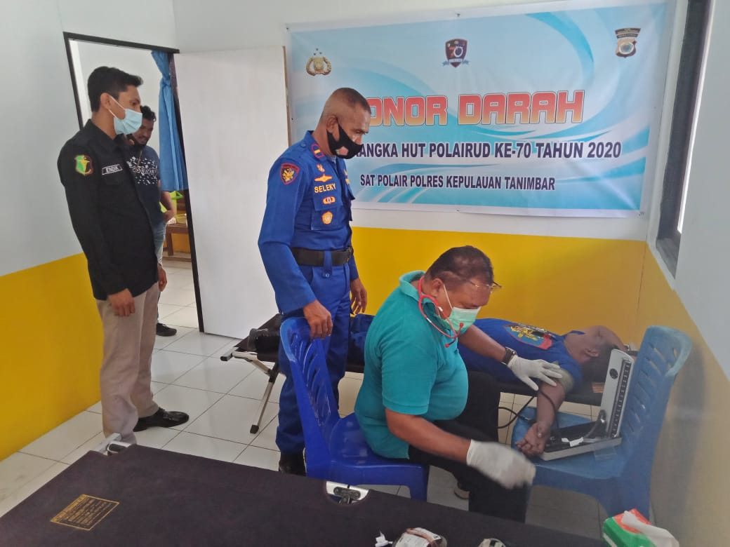 Dalam rangka Hari Ulang Tahun Polairud yang ke-70, kita Satuan Polair Polres Kepulauan Tanimbar menggelar kegiatan Bakti Sosial berupa Donor Darah Sukarela oleh personil Sat Polair Polres Kepulauan Tanimbar untuk dipergunakan bagi Masyarakat yang membutuhkan. Tutur Kasat Polair.