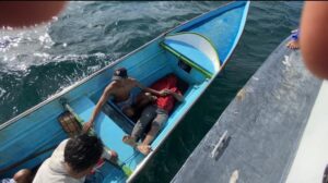 Menggunakan box ikan, LA YANDI (21) pun berenang ke tepi darat untuk menyelamatkan diri sekaligus mencari bantuan. Kurang lebih selama 2 (dua) jam lamanya,